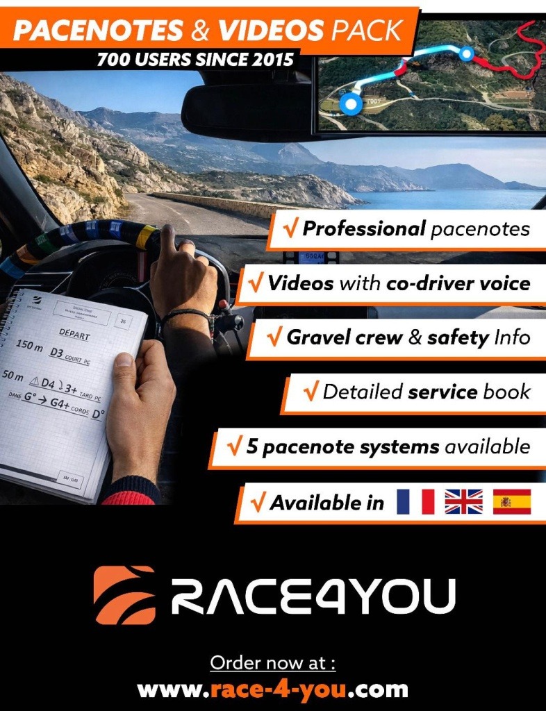En utilisant le pack pacenote, vous économisez du temps et de argent tout en utilisant un service professionnel pour rouler vite en toute sécurité
