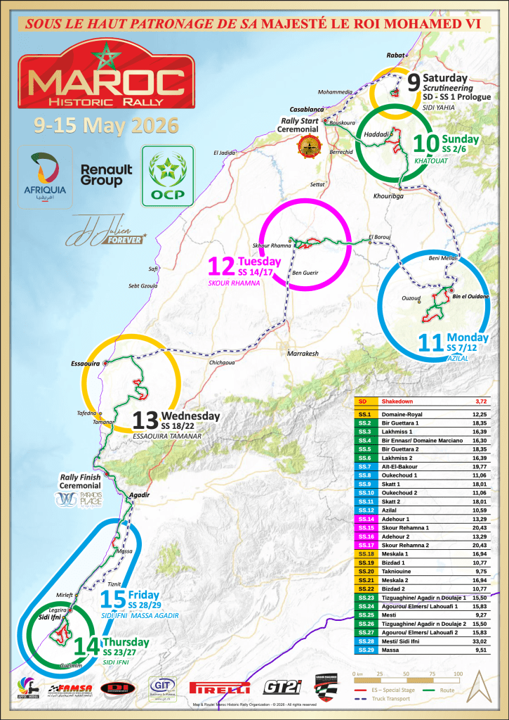 Véritable renaissance du Rallye du Maroc de la grande époque, épreuve qui fut une manche du Championnat du monde des rallyes et qui a consacrée les plus grands, le Maroc Historic Rally propose aux pilotes un terrain de jeu et une ambiance inégalables.